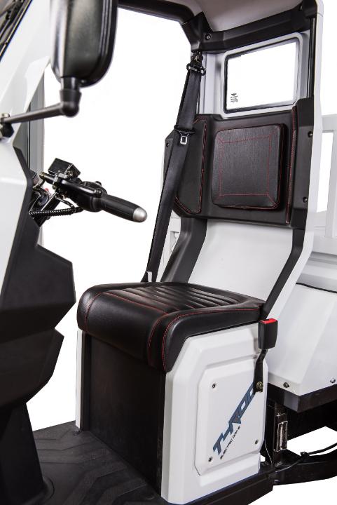 A felépítményének köszönhetően bukósisakot nem kell viselni a vezetésekor, biztonsági övvel is felvan szerelve, 1 személyes vezető üléssel.