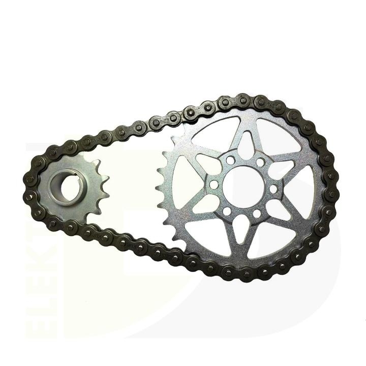 A Sur-Ron teljes elsődleges áttétel lánchajtás szettje első (13 fog) és hátsó lánckerékből (30 fog), valamint megfelelő láncból (42 szem) áll.